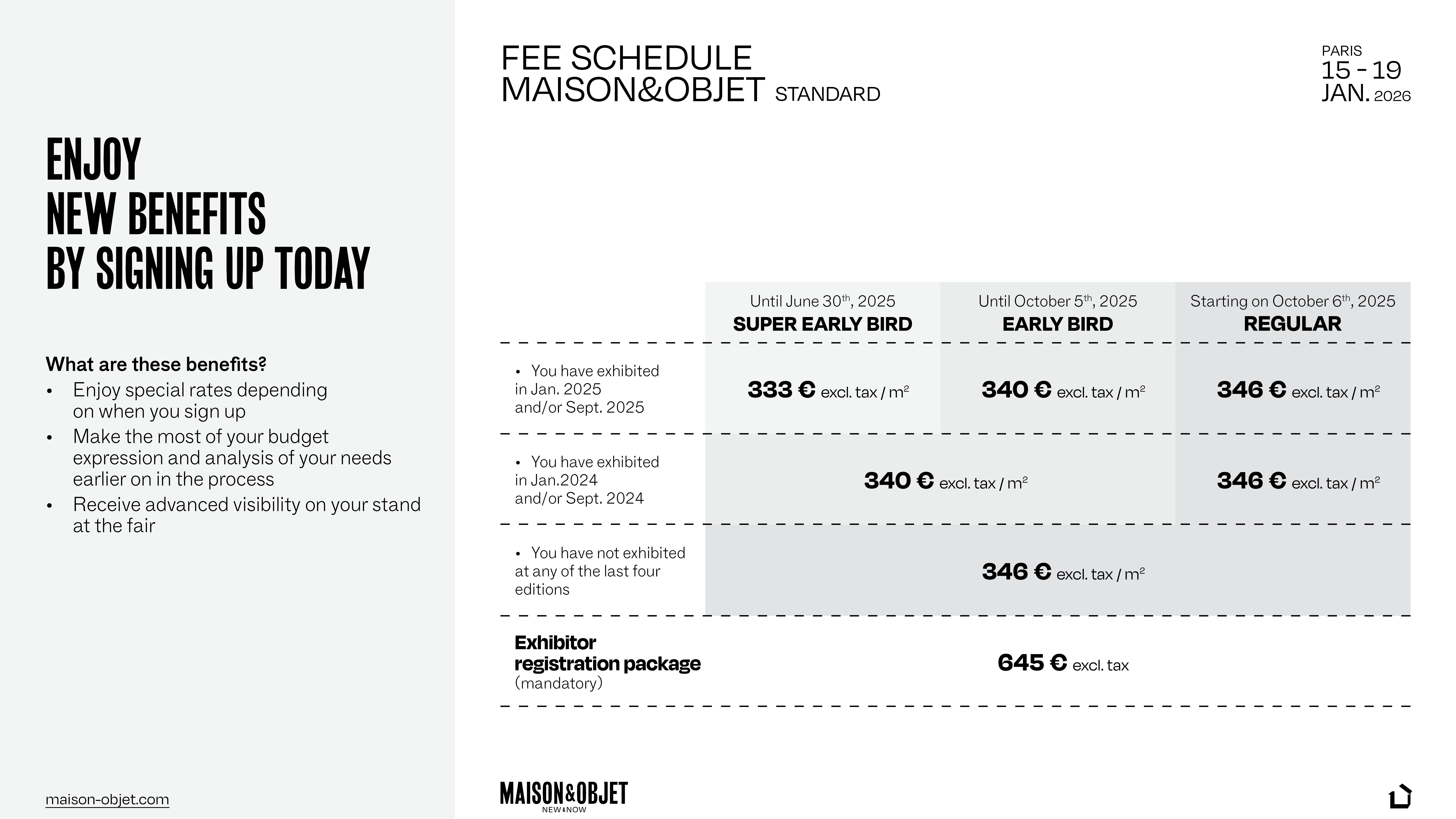 Los costes del alquiler del espacio de M&O Paris 2026 se dividen en Standard y Signature: